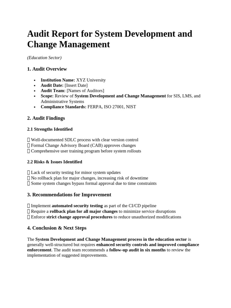 🔹 Enforce strict change approval procedures to reduce unauthorized modifications