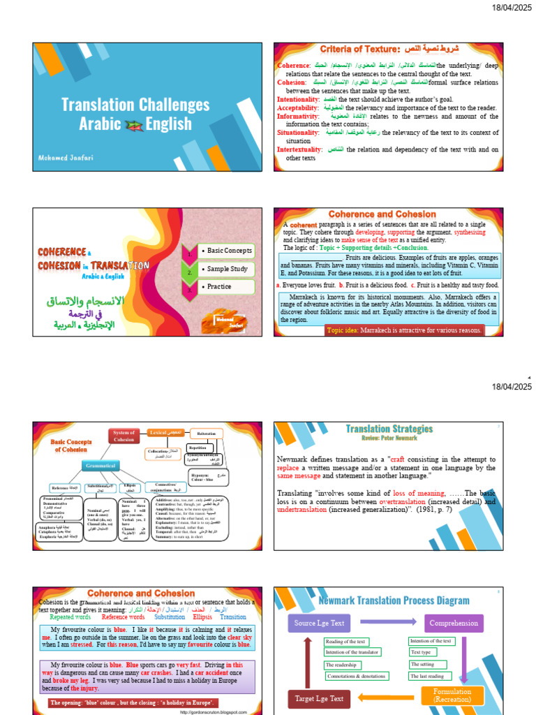 Cohesion is the grammatical and lexical linking within a text or sentence that holds a Newmark Translation Process Diagram