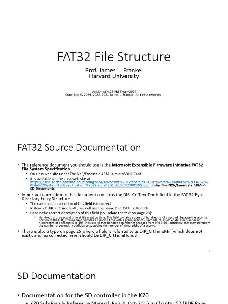 • On class web site under The NXP/Freescale ARM -> SD Documents