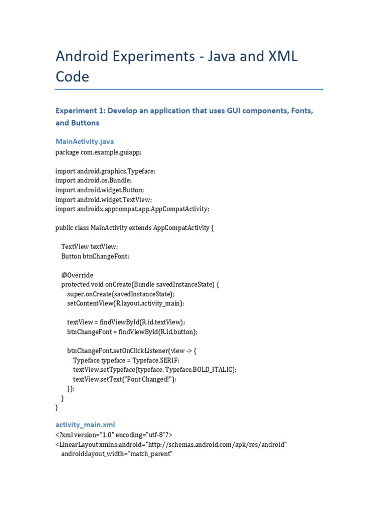 Experiment 1: Develop an application that uses GUI components, Fonts,