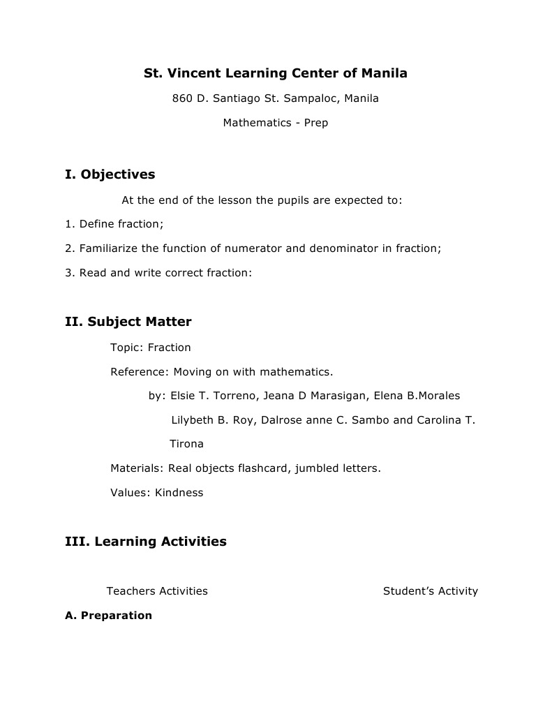 Topic: Fraction Reference: Moving on with mathematics. by: Elsie T. Torreno, Jeana D Marasigan, Elena B.Morales Lilybeth B. Roy, Dalrose anne C. Sambo and Carolina T. Tirona Materials: Real objects flashcard, jumbled letters. Values: Kindness
