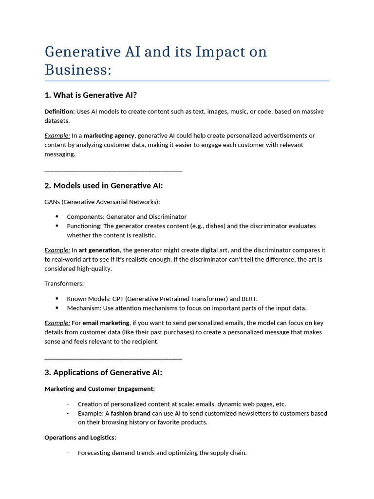 Example: In a marketing agency, generative AI could help create personalized advertisements or