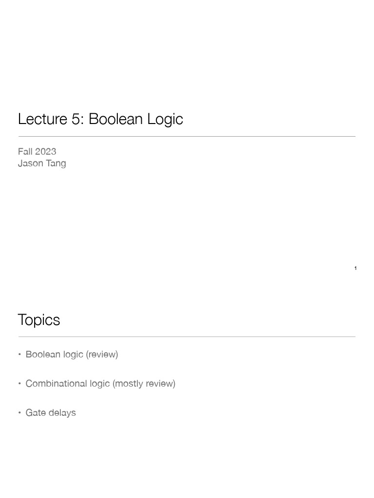 Lecture 5: Boolean Logic