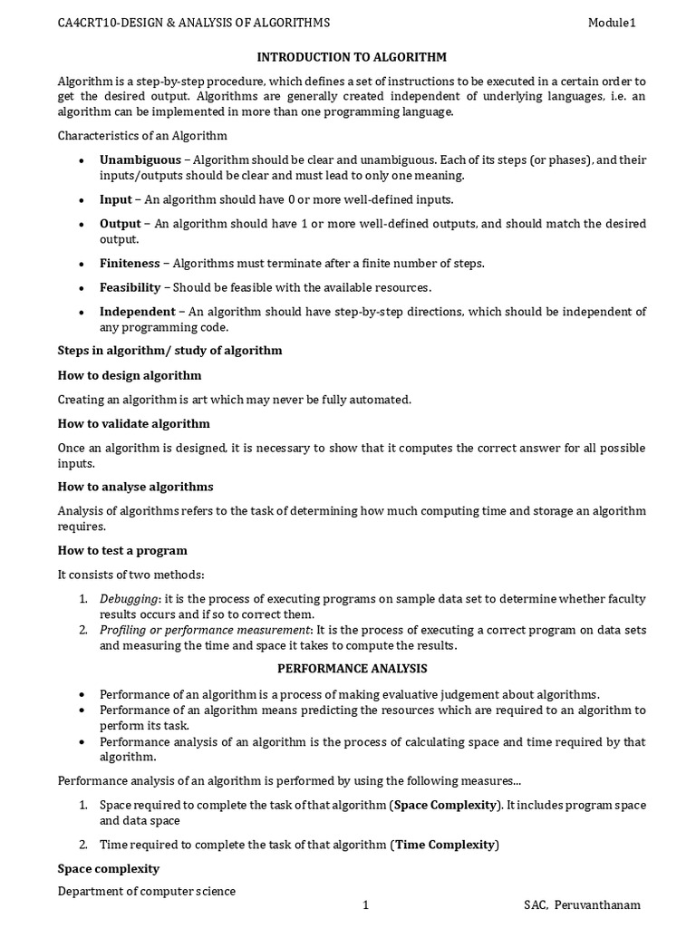 CA4CRT10-DESIGN & ANALYSIS OF ALGORITHMS Module1