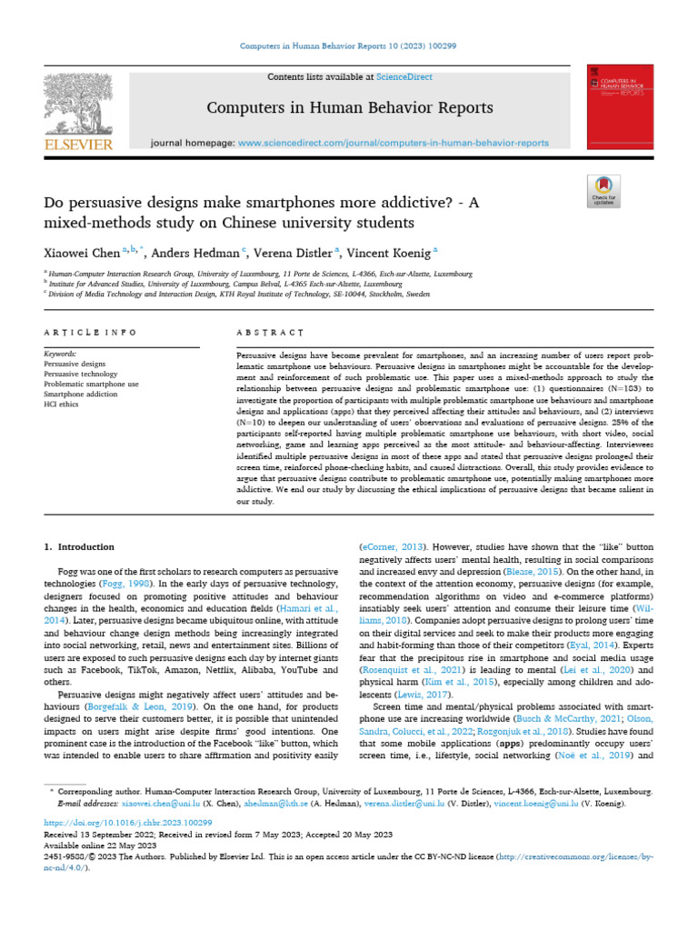 Persuasive designs lematic smartphone use behaviours. Persuasive designs in smartphones might be accountable for the develop
