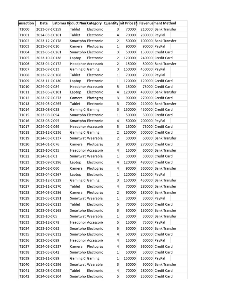 00:00:00 Tablet Electronics 4 70000 280000 Bank Transfer