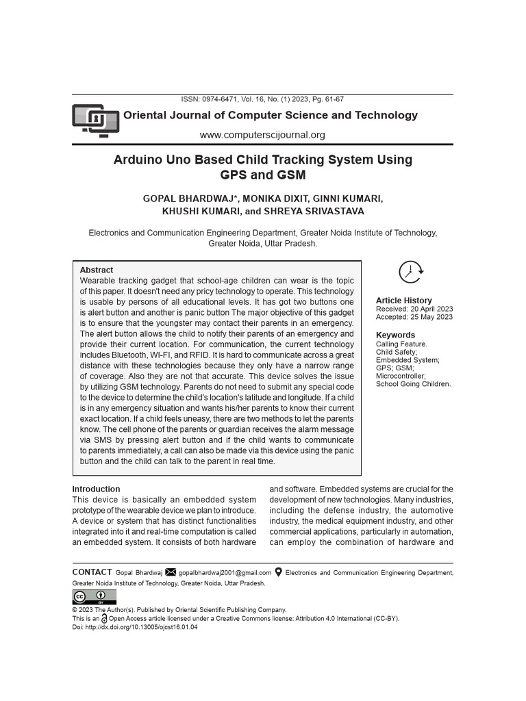 is alert button and another is panic button The major objective of this gadget Accepted: 25 May 2023