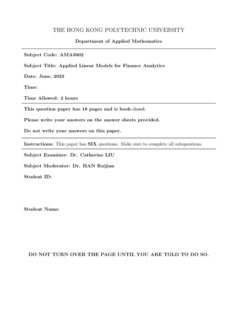 Instructions: This paper has SIX questions. Make sure to complete all subquestions.