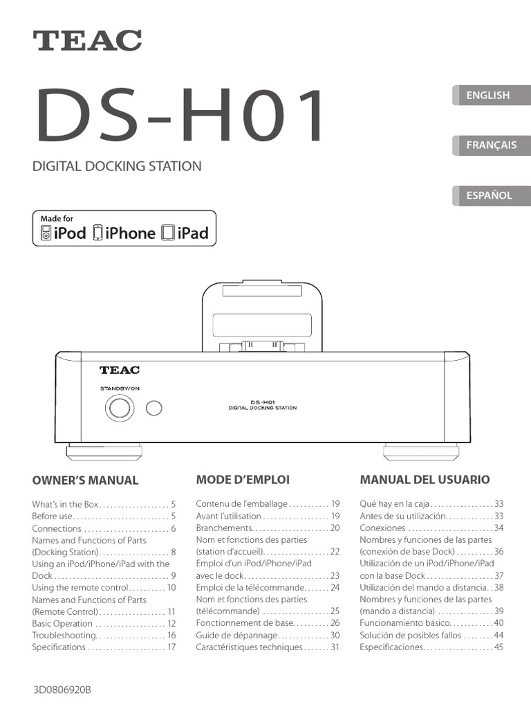 TEAC CORPORATION 1-47 Ochiai, Tama-shi, Tokyo 206-8530 Japan Phone: (042) 356-9156