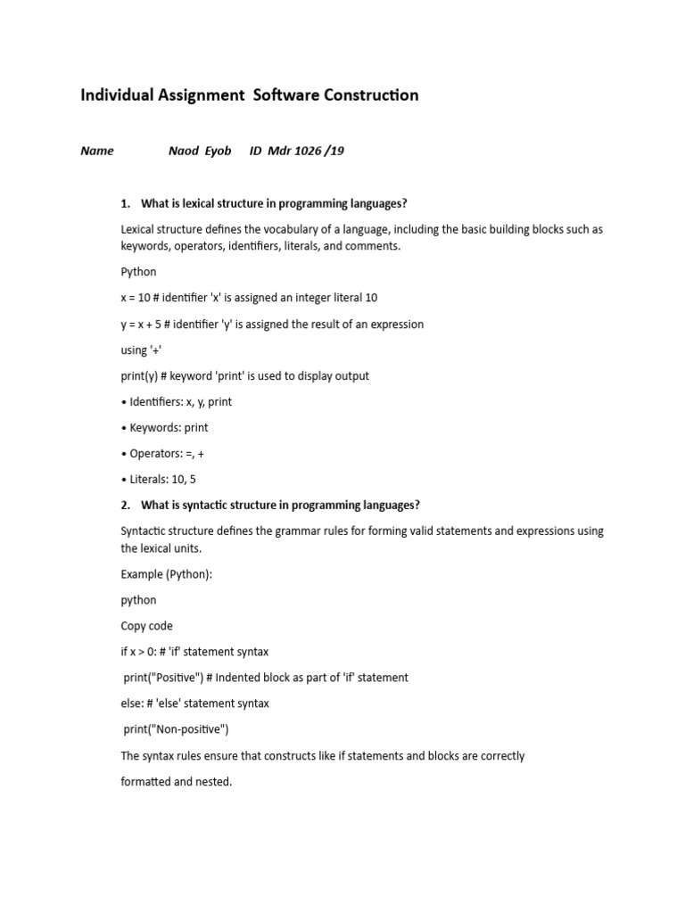 1. What is lexical structure in programming languages?