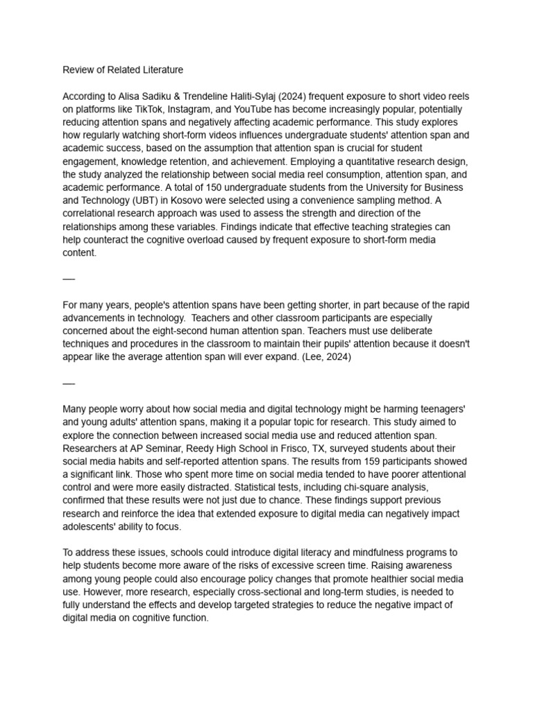 According to Alisa Sadiku & Trendeline Haliti-Sylaj (2024) frequent exposure to short video reels