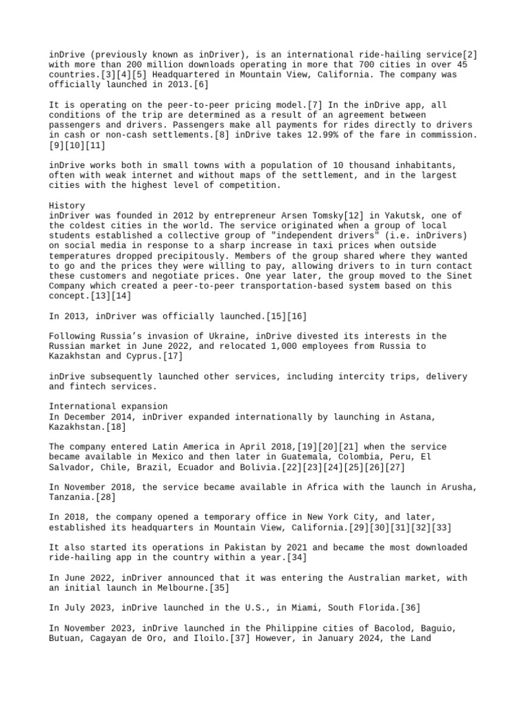 inDrive (previously known as inDriver), is an international ride-hailing service[2]