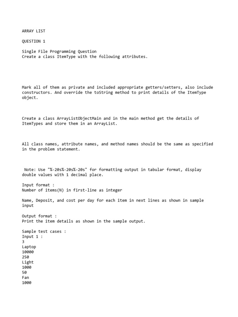 ArrayList in the Main class to store ItemType objects, allowing input and display.