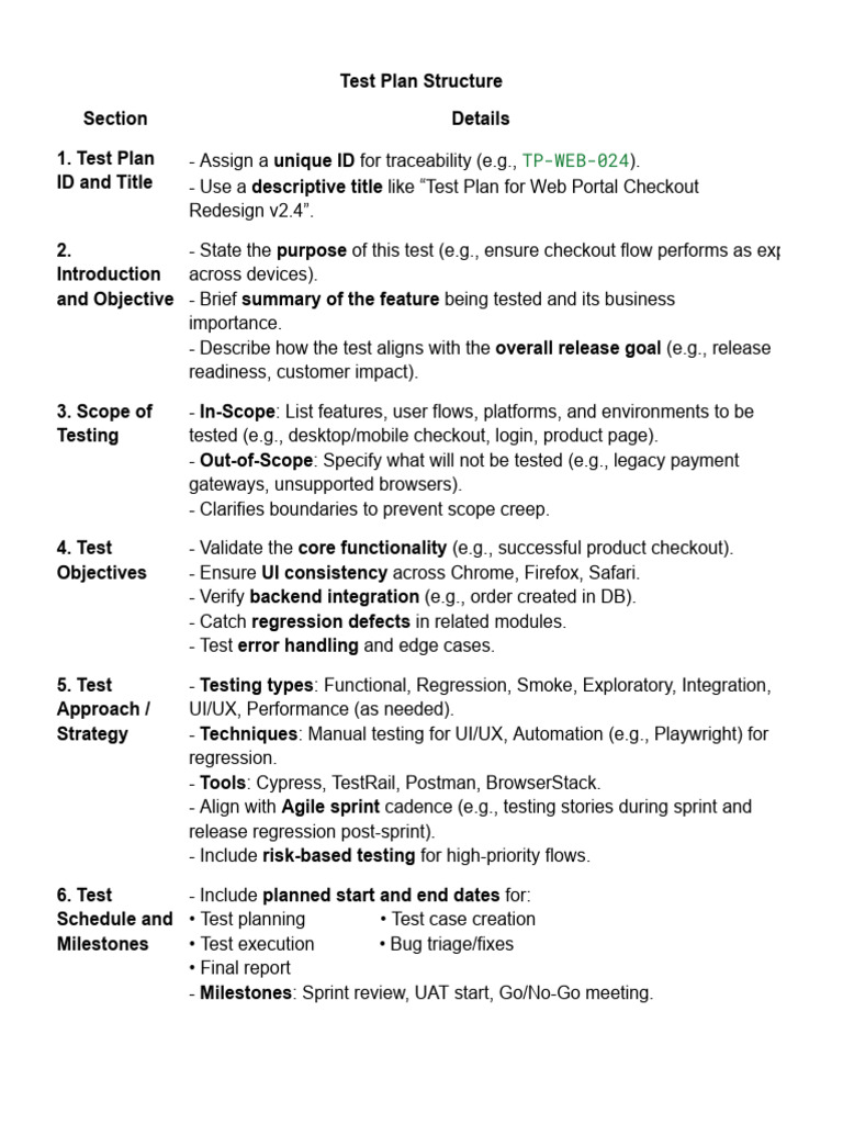 1. Test Plan - Assign a unique ID for traceability (e.g., TP-WEB-024).