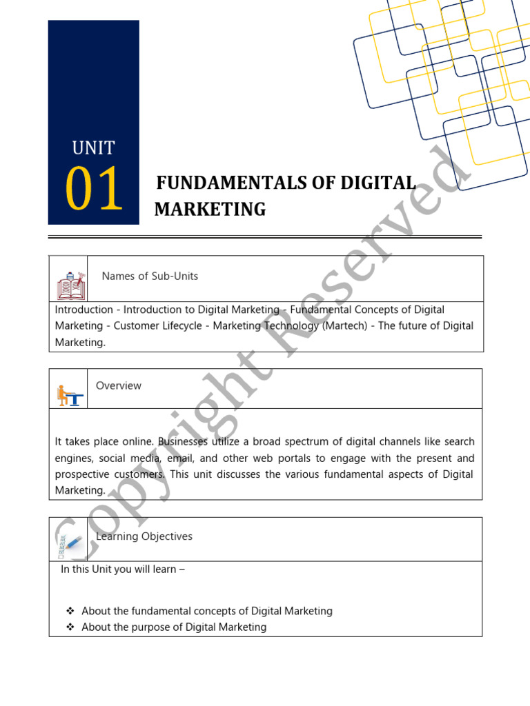 prospective customers. This unit discusses the various fundamental aspects of Digital