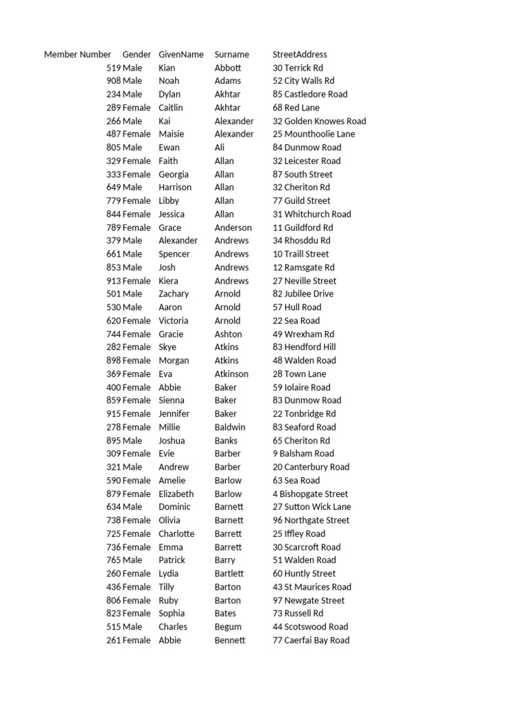 915 Female Jennifer Baker 22 Tonbridge Rd