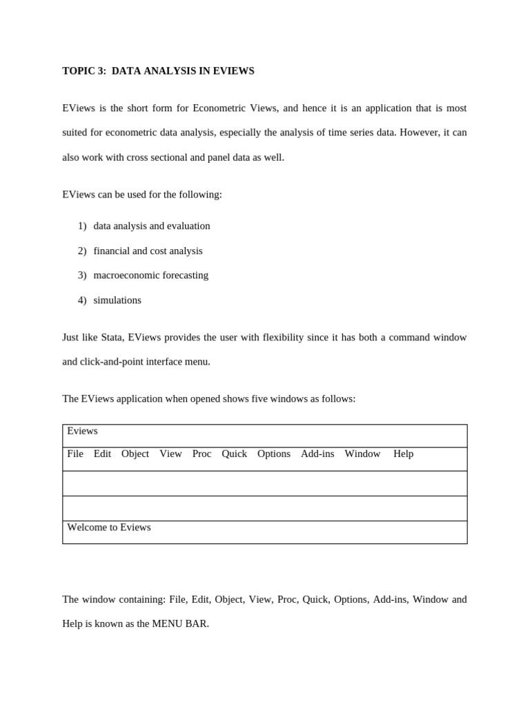 TOPIC 3: DATA ANALYSIS IN EVIEWS