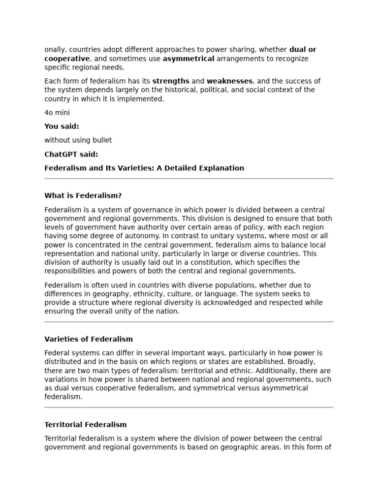 there are two main types of federalism: territorial and ethnic. Additionally, there are