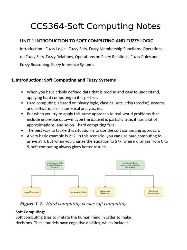UNIT 1 INTRODUCTION TO SOFT COMPUTING AND FUZZY LOGIC