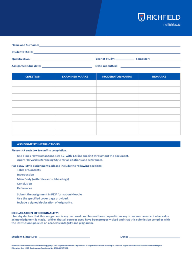 Richfield Graduate Institute of Technology (Pty) Ltd is registered with the Department of Higher Education & Training as a Private Higher Education Institution under the Higher