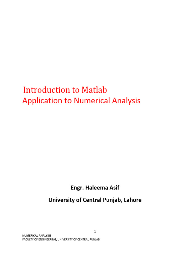 Numerical Analysis MATLAB MANUAL