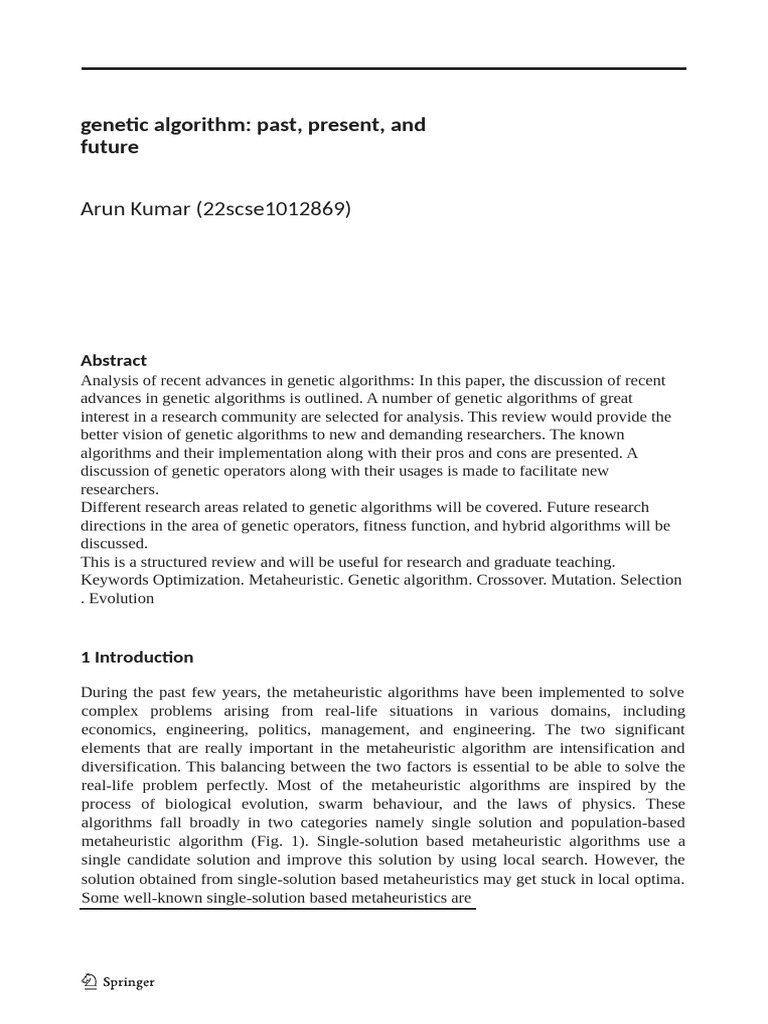 research domains. The role of genetic operators like crossover, mutation, and selection in