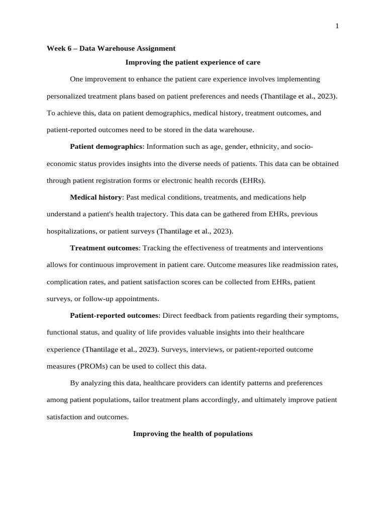 Week 6 – Data Warehouse Assignment