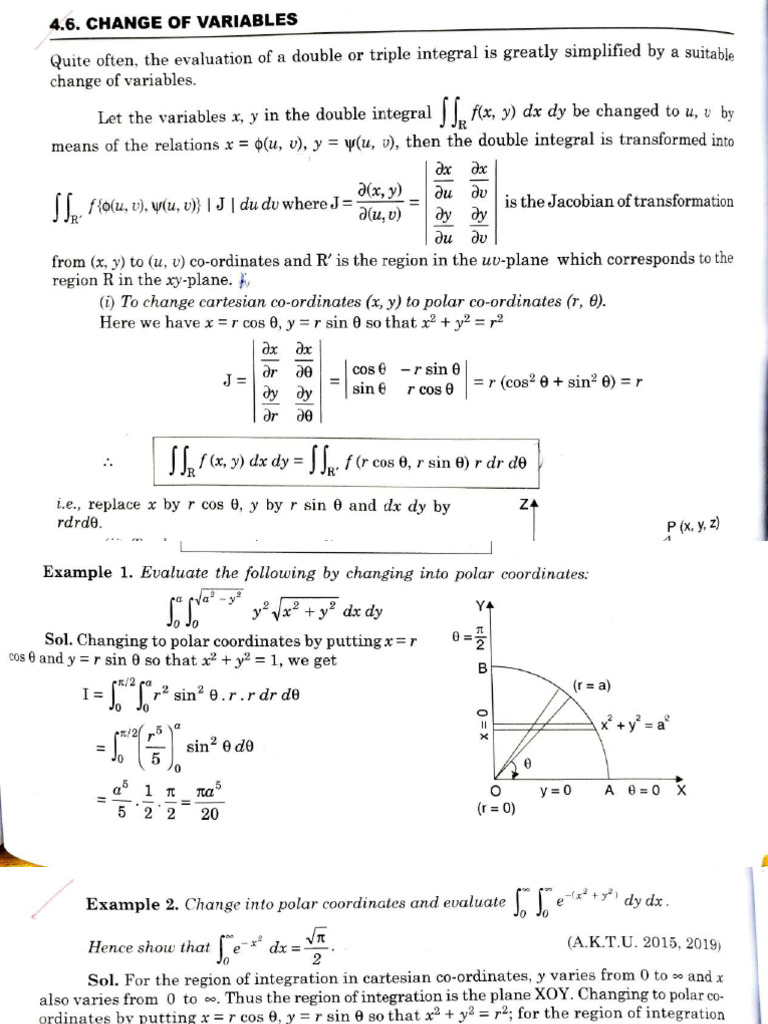 ordinates by putting x =r cos @, y = r sin @ so that x” + y? = r?; for the region of integration