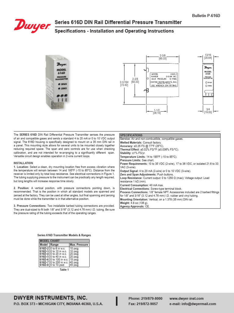 DWYER INSTRUMENTS, INC. Phone: 219/879-8000 www.dwyer-inst.com