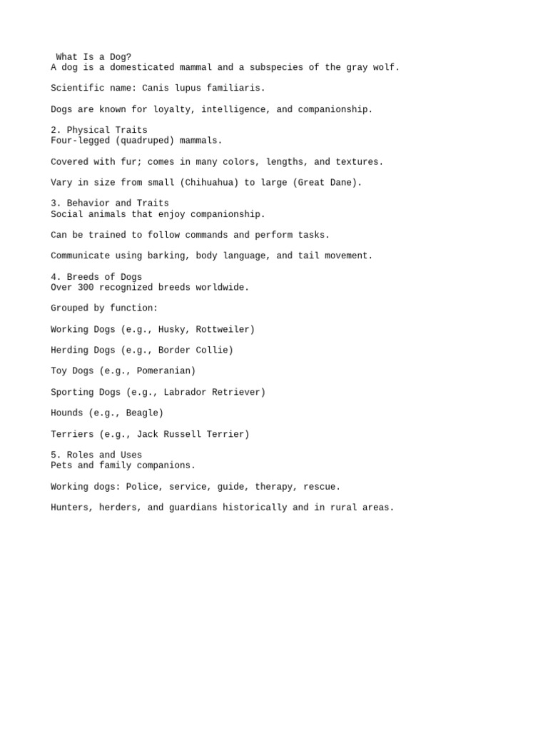 A dog is a domesticated mammal and a subspecies of the gray wolf.