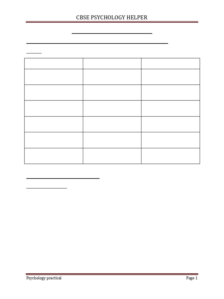 1. Psychology Practical File with name, class and section and board roll no. [Front page]