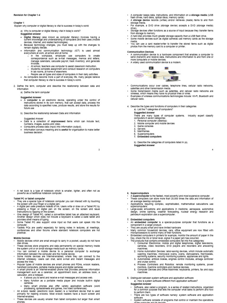 data according to specified rules, produce results, and store the results for 4. Describe the types and functions of computers in their categories