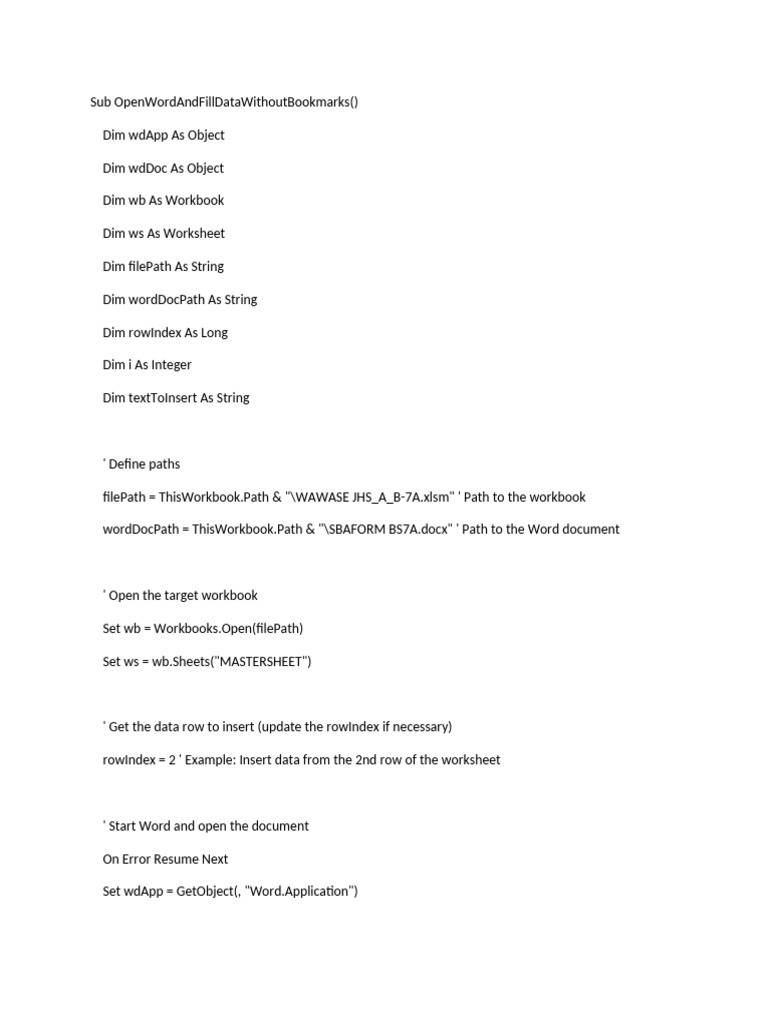 wordDocPath = ThisWorkbook.Path & "\SBAFORM BS7A.docx" ' Path to the Word document