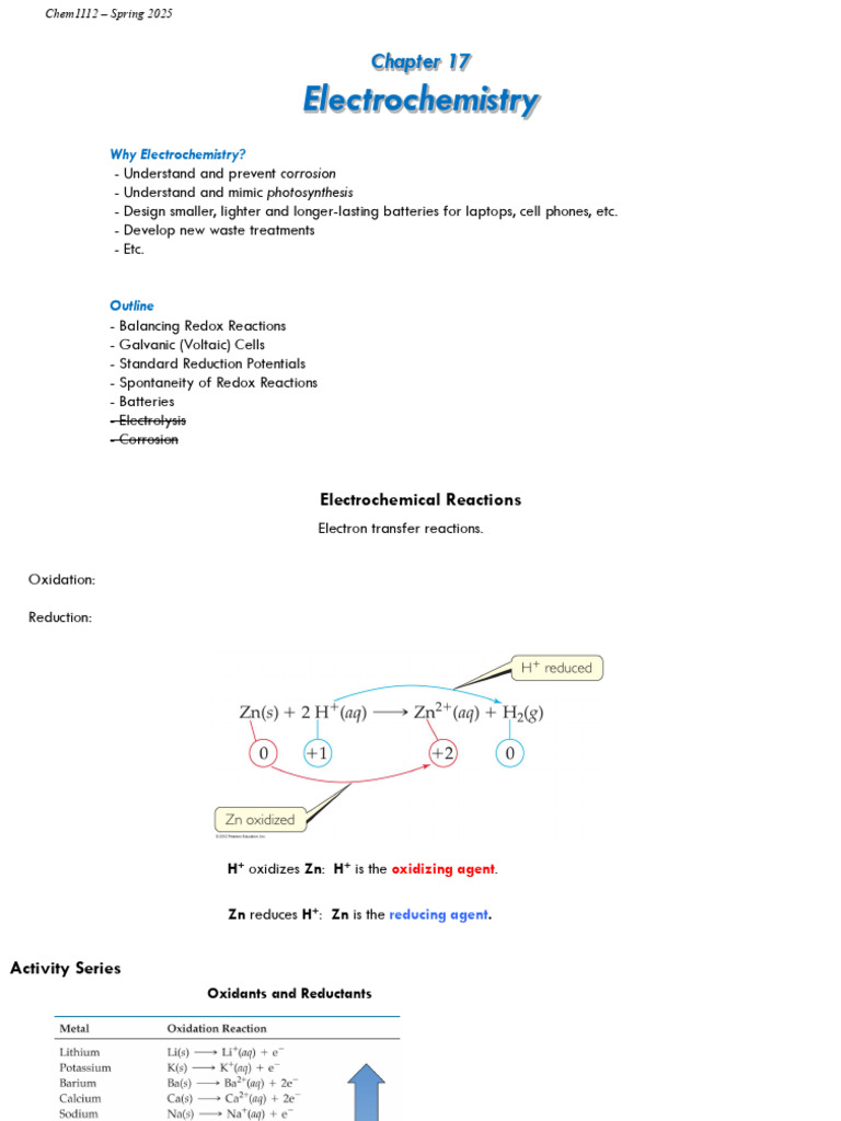 Oxidation: H2(g) 2H+(aq) + 2e– Oxidation: H2(g) 2H+(aq) + 2e– Oxidation: Zn(s) Zn2+(aq) + 2e–