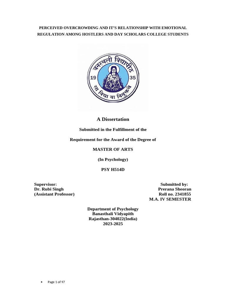 Singh for the research project entitled “PERCEIVED OVERCROWDING AND IT’S