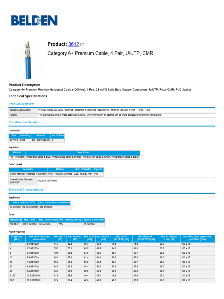 Patent: This product has one or more applicable patents. More information on patents can be found at https://www.belden.com/patents.