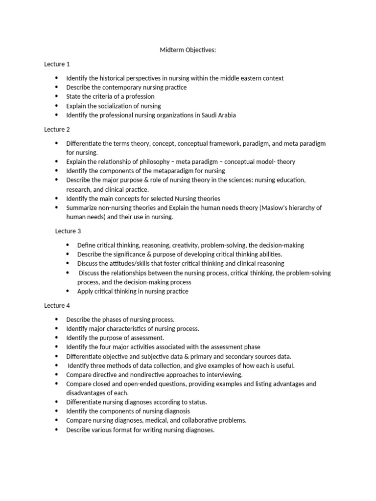 Midterm Objectives: