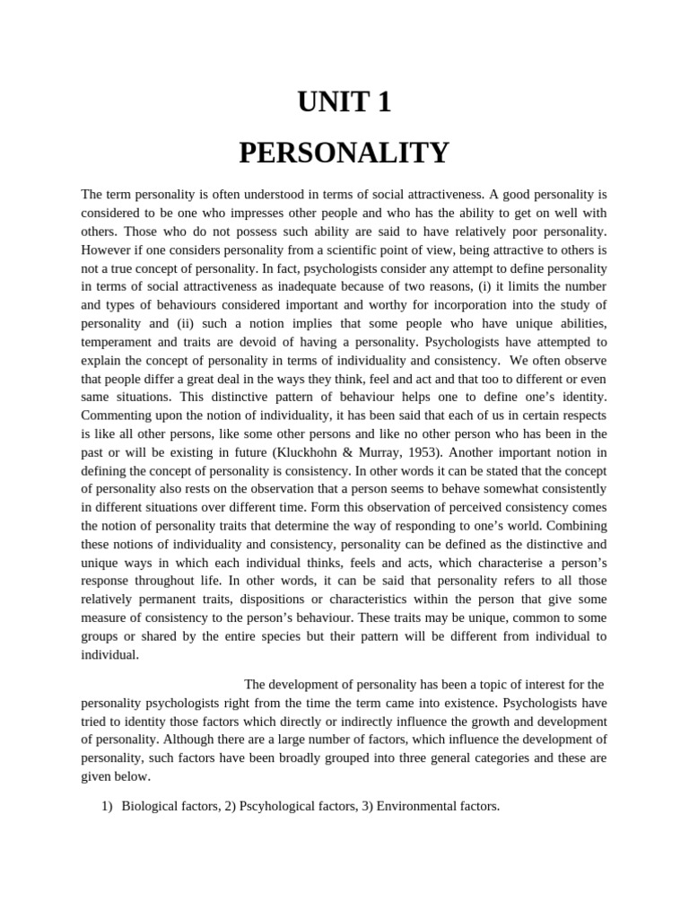 explain the concept of personality in terms of individuality and consistency. We often observe