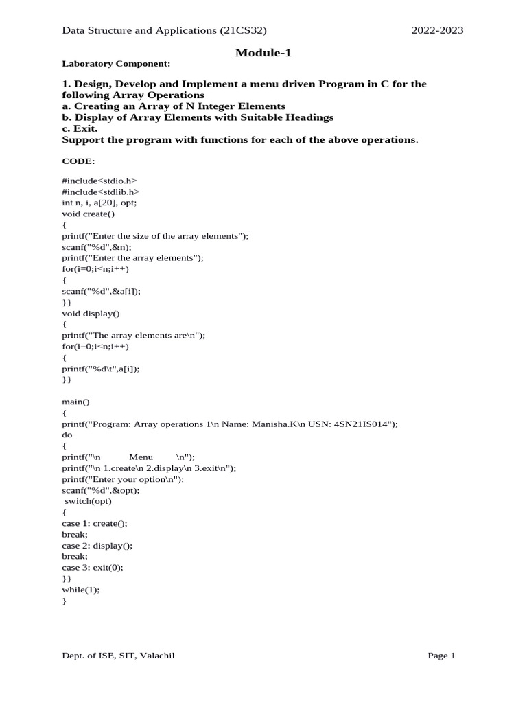 printf("Program: Array operations 1\n Name: Manisha.K\n USN: 4SN21IS014");