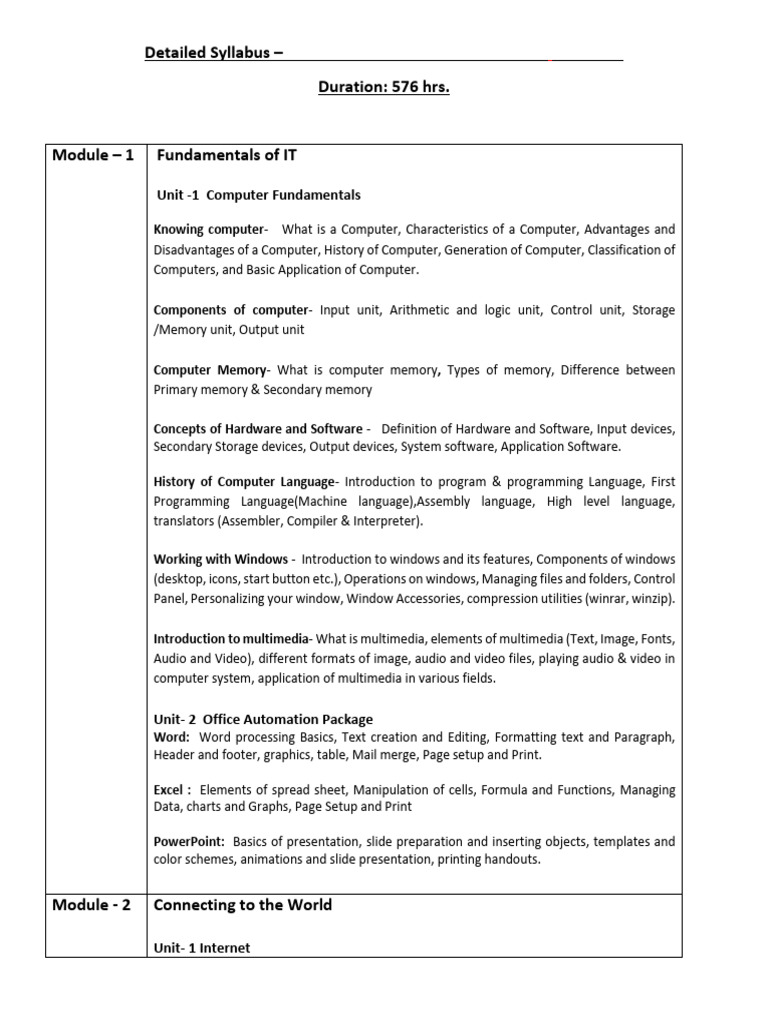 Module – 1 Fundamentals of IT