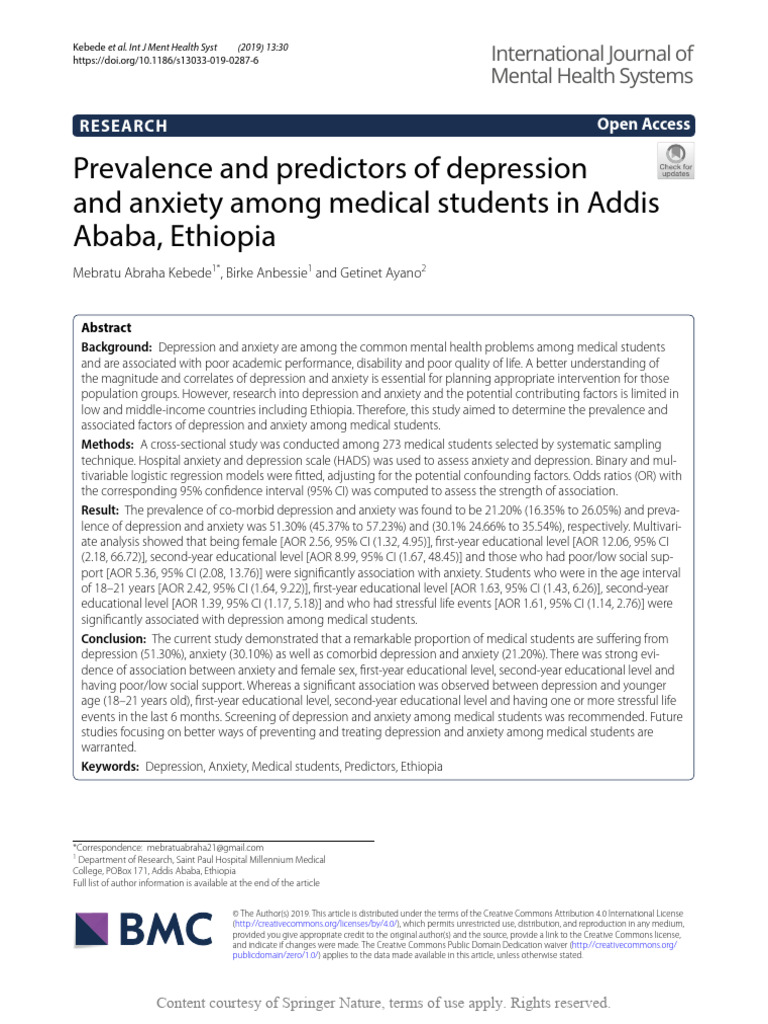 Keywords: Depression, Anxiety, Medical students, Predictors, Ethiopia