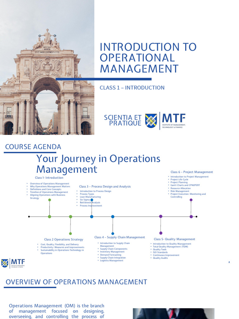 • Timeline of Operations Management • Introduction to Process Design • Risk Management