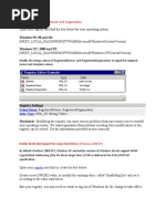 Documents are opened in and saved to the device's internal storage by default. You can change this location to, for example, your Storage Card: HKLM\Software\Microsoft\Windows CE Services\FileSyncPath = "\Storage Card\My Documents" (REGSZ string, no quotes) To return to the original location: HKLM\Software\Microsoft\Windows CE Services\FileSyncPath = "\My Documents" (REGSZ string, no quotes) Change the location of email and attachments When reading and sending email in Pocket Outlook, emails and their attachments are saved in the device's internal storage by default. You can change this location to, for example, your Storage Card: HKCU\Software\Microsoft\MAPI\PropertyPath = "\Storage Card\Mail" (REGSZ string, no quotes) HKCU\Software\Microsoft\MAPI\AttachPath = "\Storage Card\Mail\Attachments" (REGSZ string, no quotes) To return to the original location: Just simply delete these Registry settings (since neither is included by default). Change the location of Temporary Internet Files When browsing the web, pages and images are saved in the 'Temporary Internet Files' location. You can change this location to, for example, your Storage Card: HKCU\Software\Microsoft\Windows\CurrentVersion\Explorer\Shell Folders\Cache = "\Storage Card\cacheie" (REGSZ string, no quotes) To return to the original location: HKCU\Software\Microsoft\Windows\CurrentVersion\Explorer\Shell Folders\Cache = "\Windows\Profiles\guest\Temporary Internet Files" (REGSZ string, no quotes) Change the location of Ringtone file storage WM5 will look for Ringtones in \Windows\ or \Windows\Rings by default. You can change this location to, for example, your Storage Card (example given is for ringtones placed on the Storage Card root folder): HKCU\ControlPanel\SoundCategories\Ring\Directory = "\Storage Card\" (REGSZ string, no quotes) To return to the original location: HKCU\ControlPanel\SoundCategories\Ring\Directory = "\Windows\Rings\" (REGSZ string, no quotes) Note the default location may be "\Windows\" or "\Windows\Rings\" depending on your Device provider. Change the folder where the camera stores images and videos (HTC only?) For images (REG_SZ string): HKLM\SOFTWARE\HTC\Camera\Image\SaveFolder For videos (REG_SZ string): HKLM\SOFTWARE\HTC\Camera\Video\SaveFolder The folder you specify here is inside My Documents, i.e., if you set the value "Pictures" it will store them in "\My Documents\Pictures". Make WM5 ask where to install a program (1) If you wish to be able to specify whether to install a program on WM5's Main storage, or your Storage Card, regardless of installer setting set: HKLM\Software\apps\Microsoft Application Installer\fAskDest = 1 (DWORD decimal) To disable again: HKLM\Software\apps\Microsoft Application Installer\fAskDest = 0 (DWORD decimal) Please note that many applications do not support being installed on the Storage Card and may behave unpredictably, including crashing. Make WM5 ask where to install a program (2) An alternative method of making WM5 ask where to install a program is by adding the "/askdest" option to the Windows CE loader: HKCR\cabfile\Shell\open\command = 'wceload.exe "%1" /askdest' (REGSZ string, no quotes) Make WM5 keep CAB files around after installing (1) If you wish to keep the original .CAB file around after installing the application, set: HKLM\Software\apps\Microsoft Application Installer\nDynamicDelete = 0 (DWORD decimal) Or to restore to the default: HKLM\Software\apps\Microsoft Application Installer\nDynamicDelete = 2 (DWORD decimal)