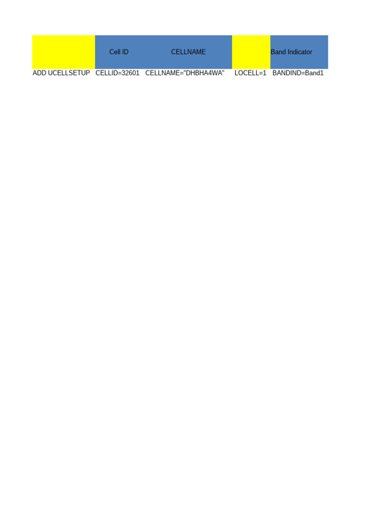 ADD UCELLSETUP CELLID=32601 CELLNAME="DHBHA4WA" LOCELL=1 BANDIND=Band1