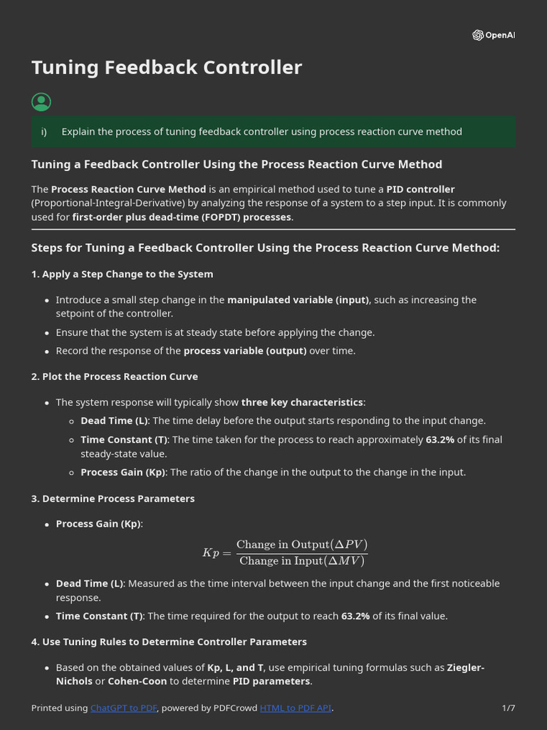 response analysis. By determining Kp, L, and T, and applying standard tuning formulas, an effective PID