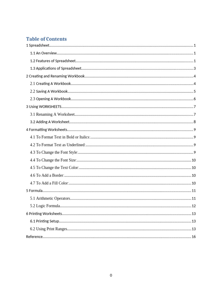 1.3 Applications of Spreadsheet..............................................................................................................3