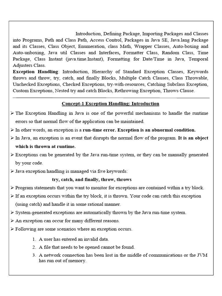 Concept-3 Keywords throws and throw, try, catch, and finally Blocks