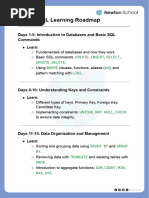 The document outlines a 14-day SQL learning plan focused on data analytics, covering topics from basic SQL commands to advanced techniques like data normalization and query optimization. Each day includes specific objectives, topics, and time allocations for theory and practice. The final day emphasizes applying learned skills to real-world data analysis scenarios.
