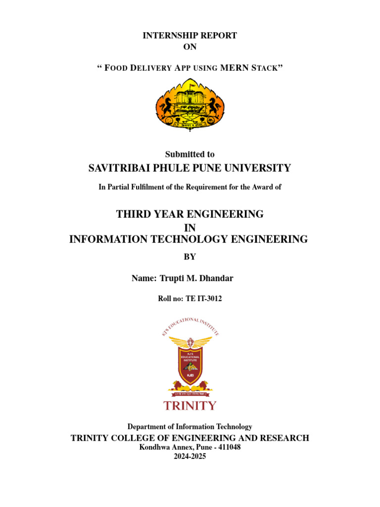 MERN stack. The project addressed essential aspects of modern food delivery systems such as restaurant