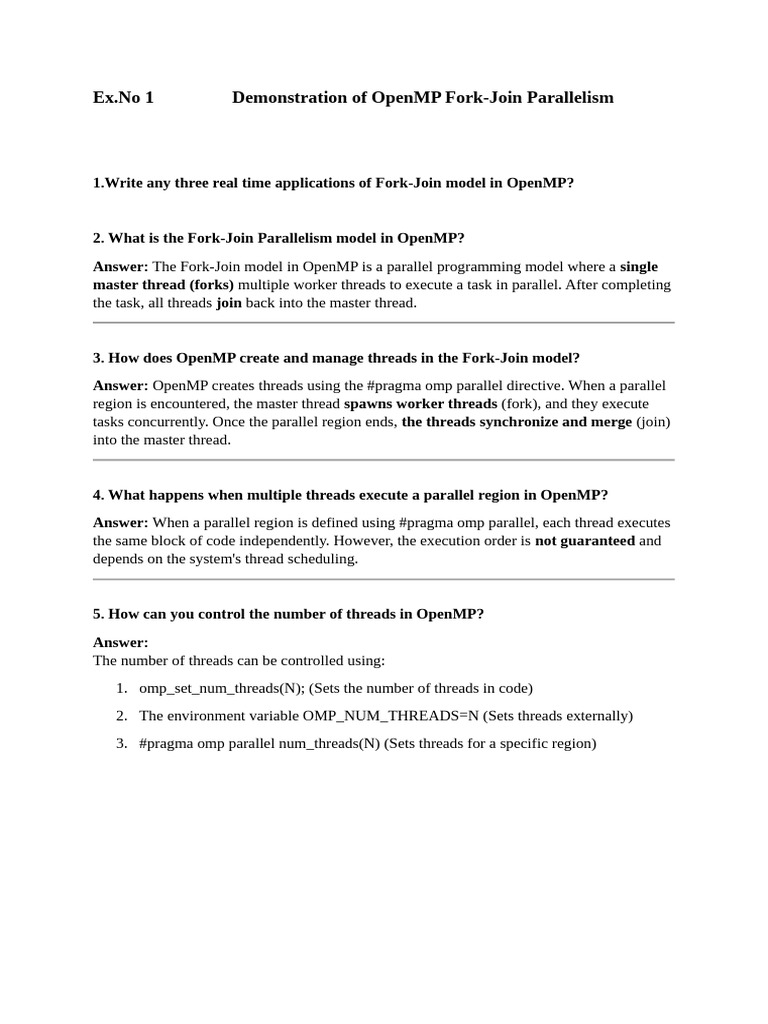 Answer: OpenMP creates threads using the #pragma omp parallel directive. When a parallel